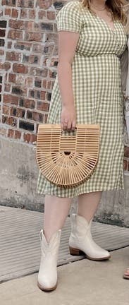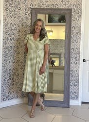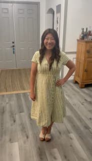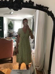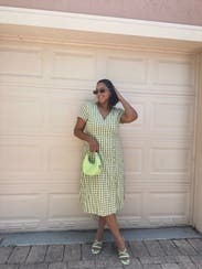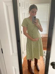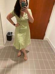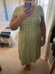 Love this dress. Fit well - just enough of an A line for my pear shape. The gingham fabric made it a cute summer dress. I wore this to work (we have a casual setting). Thought about purchasing - I love this dress, but not my favorite color/print. Would rent again.