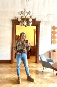 Wore while working from home and out to dinner. Felt on trend: the pattern is fun and the fit is perfectly oversized. Fabric is heavy enough for winter, but not too heavy. Considered buying!
