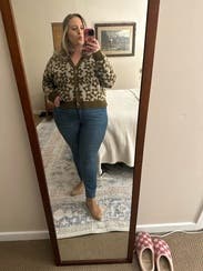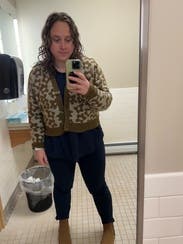 Loved the color and was super comfy. I have a short torso so liked the cropped fit as it hit right at my waist. For larger chested ladies, the buttons don’t pucker!