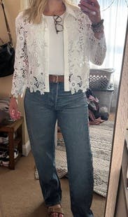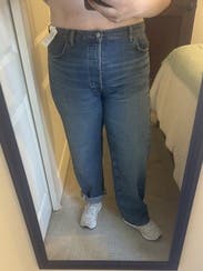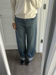 Madewell jeans usually work well for me - these were good but felt a bit mom-jeansy with the high button fly and baggy leg. Not the worst but not the most flattering.