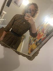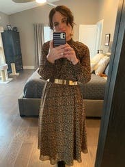 I liked this much better with a belt. I’d love it if it was a petite…always a struggle. Wore to dinner with booties. Would be great for work. Also plan to wear again before returning.