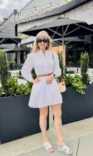 The Pin Tucked Eyelet Mini Dress by Madewell is a breezy, vintage-inspired piece featuring intricate pintuck detailing and delicate eyelet fabric. Pair it with strappy sandals and a woven tote for an effortless warm-weather ensemble.