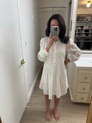 This white dress looks pretty nice, but it’s a little difficult to put on.