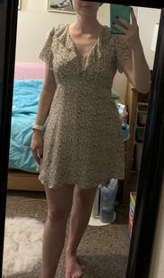 This is going to become a summer staple for me. It's SO light and adorable, easy to throw on while looking put together. The v is a little low (you can see right down it leaning forwards), but fine for everyday. I'm usually an 8 and thought this was TTS; I could have worn the 6 in the waist / hips but any smaller wouldn't have worked on my 34D chest.