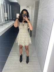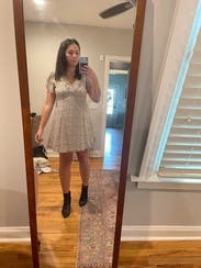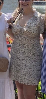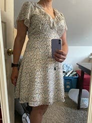 I loved this dress and it fit me perfectly. Very flattering fit. I wore it with sneakers for a more casual look but it would be cute with sandals too. I only wore it once because I haven't had much of a social life during the pandemic. Would absolutely rent this again!