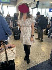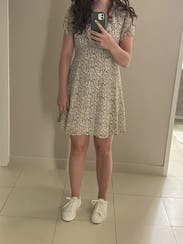 I wore this dress to WFH and then out for a patio date afterwards. Worked well in both settings! Comfy and cute - appropriate up top (with a camisole) for video calls, but fun and flirty enough for a date. Paired with Adidas gold stripe sneakers. Would rent again!