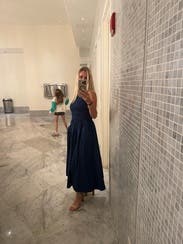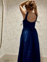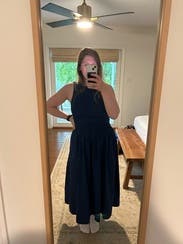 Also loved the mid back openness of the tank in the back. The best part was the color. It wasn’t quite navy. It was a very rich dark blue. I want to say a deep Prussian through. Beautiful and rich color. Loved the length. Not too long, but like tea length worked really nicely. It was cotton and super well-made, uncomfortable.