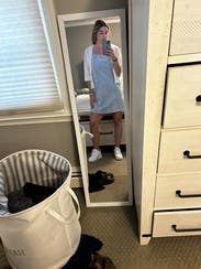 I love this dress, super trendy. It was the right length, a little tight in hips and stomach but nothing spanx can’t fix. Can be dressed up or casual.