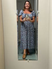 This was a perfect summer into fall dress. It’s light, the perfect maxi-ish length, has pockets and covers all the things. I will be renting this again. It fits true to size even for larger chested women.