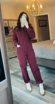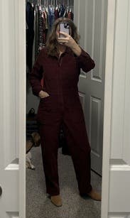 loved this jumpsuit, wore it at least 5x during my rental. not a particularly baggy/loose fit for those of us with hips/boobs but still fit my hips and thighs fine, which is not a given in a jumpsuit. very cute and autumnal!