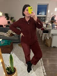 It's so super comfortable but still looked like I made an effort because the corduroy gives it a bit of structure. Pockets everywhere that can hold big things. Zipper for easy bathroom trips. Warm enough to wear outside on an autumn day. I love it.