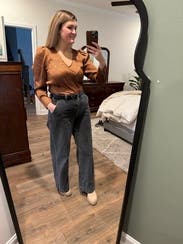 Fun pair of wide leg jeans. Fabric was soft and comfy (but doesn’t hold ya in which can be nice but also sometimes I want a little bit of a hold)