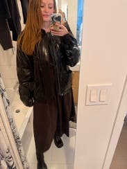 I’m obsessed with this jacket. It’s perfectly oversized, so get your normal size if you want that slightly baggy leather jacket look. It is also shockingly soft leather. Not quite as thick as it looks, so good for fall.