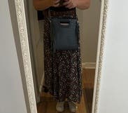 I rented this bag mainly because I like the color. It's stylish and high-quality with a nice adjustable strap and convenient magnetic closure. It's a good size to fit everything I need, but I wish it had an internal pocket or divider to stay organized.