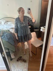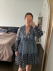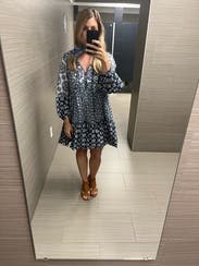 I love the style and fit of this dress. It was super flattering and comfortable. It is definitely short so beware if you’re tall!
