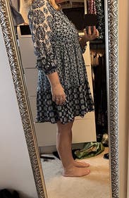 The flowiness of this dress accommodated my 26 week belly. The lining was low cut but didn't bother me.
