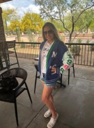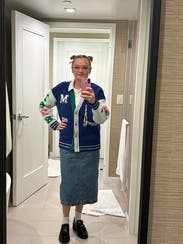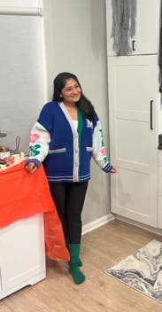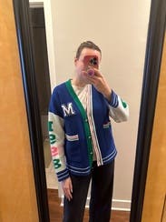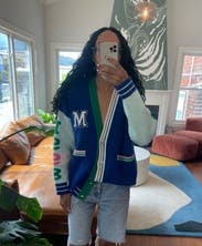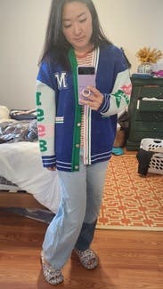 I got so many compliments on this oversized varsity sweater jacket. I'd wear it as a fall/spring jacket versus a chunky sweater. Loved the colors and consideeed buying