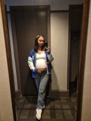 Wore this to NYC at 26 weeks pregnant. It's really thick, so it wouldn't be good for warm weather. Maje always has great items!