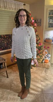 Very comfy and classy sweater.. beautiful color and goes well with just about anything