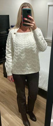 Loved this enough to buy. I’m always cold and this sweater keeps even me warm.