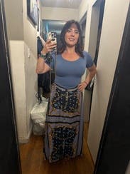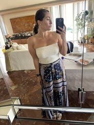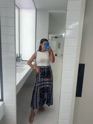 The skirt was both gorgeous on the eyes but also the fabric was luxe and soft. It was a great companion to a variety of top colors. But this indigo was the perfect match! Love it!