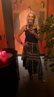 Loved the skirt more than the shirt but kind of hard to pair with anything else. size down one for both. couldn't wear by the end bc it was too big.