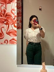 These ran small and the buttons don’t like to stay buttoned but other wise a very cute top to wear with high waisted pants