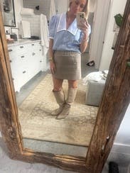 This mini skirt is a dream for petite girls! The length is just right, and the elastic waistband makes it incredibly comfortable to wear all day. Looks great with a tall boot or a loafer. Highly recommend!