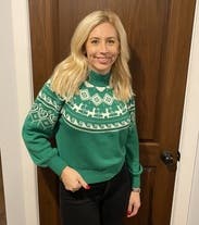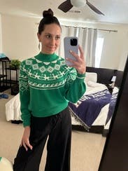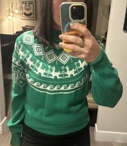 This is the perfect Christmas sweater. When I wore it everyone wanted to know where I got it! I wore it with white jeans and it looked fantastic.