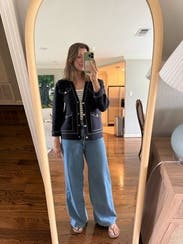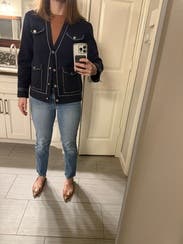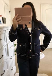 Style: This cardigan is gorgeous. I styled it lighter than I would for Fall because it’s still in the 90s here in Texas. I love a cardigan that works cross-seasonally. I’d wear this over my shoulders with a white, Summer dress or with a cream, lacy shorts and tights for Winter. She’s light enough that she’s not too warm. Fit & Sizing: Naturally oversized, so no need to size up. I usually size up in sweaters but didn’t need to here. It’s comfortable, easy to throw on, and has that relaxed vibe without looking sloppy. If you’re stuck with opposing sizes for your rental, you could go up or down and it will be fine. Quality: Amazing. The stitching detail runs through to the inner lining, the buttons have a subtle Maje logo, and while the top two pockets are faux, the bottom two are real. It feels high-end and well made. Overall: I loved this piece so much I’m seriously tempted to buy it. I already own a Sandro cardigan (same brand family) that I wear all the time, so I know it would get a lot of use. I just got it today and ran here to help my girls because I live for the reviews when deciding my rentals!