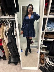 Usually love Maje dresses, but this one has very exaggerated, balloon-y sleeves. It was too much sleeve fabric for me. It's a pretty color, though--a deep, navy-ish blue.