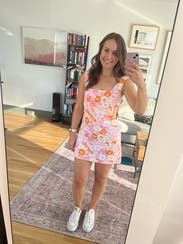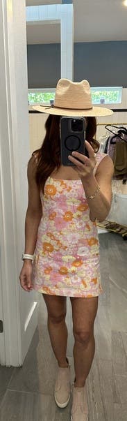 RTR AMBASSADOR REVIEW The cutest dress, can wear it up or down. A little bit short, im 5’7 and my spandex showed underneath when I sat up/down. Wore 5+ times this shipment