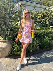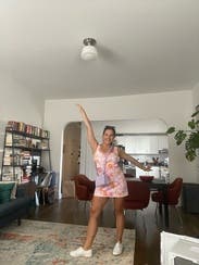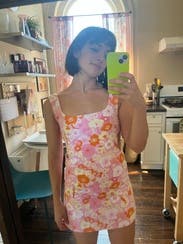 This dress was so adorable to wear for a spring/summer party. It was a bit big in the shoulders and the straps fell down my arm a couple times, but other than that so so cute!