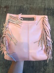 This handbag is a good size for everyday. Pink fringe is eye-catching.
