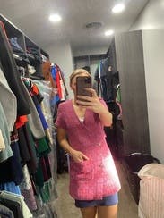 The dress hit just at my fingertips and I did have to use a pin to keep it closed on the top. Overall, 5 out of 5. So darn cute!!!!