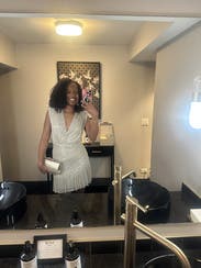 Wore this to an event where the theme was shiny/sparkly. I overall liked this dress and it definitely fit the vibe! Tall girls beware that it is pretty short and rides up, and for flat chested girlies like me, the chest area is pretty loose, I had to pay attention to keeping myself covered.