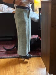 These are very hip pants. They fit perfectly but it was just too warm to wear them. I was hoping they were a little lighter. Super cool though. The sparkly tweed with a jean like waist band . Definitely going to rent in the fall and may buy them.