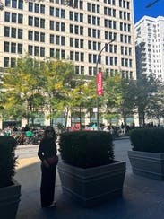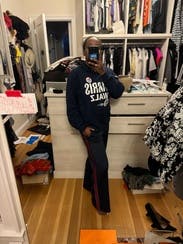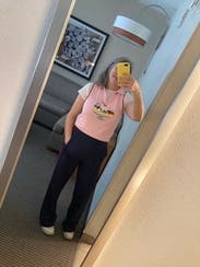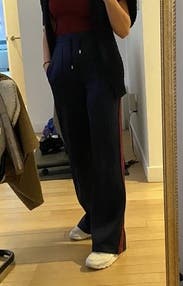I accidently uploaded the wrong photo and the website wouldn't let me delete it, so just ignore that one. The track pants were too long and super high waisted. A bit too high-waisted. It was a little uncomfortable. I kept wanting to pull them down. And they were way long. I have short legs and I'm 5'4". I probably could have sized down. They were just ok. probably won't rent again.