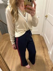 Loved these pants so much that I bought them! They manage to be comfy, cozy, and stylish. You could also pair them with a an oversized button down shirt and kitten heels for a spotted elevated look.
