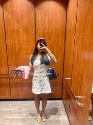So cute and flattering. I love snap buttons! Was so quick for me to get dressed in the morning. The dress is beautiful and really looked nice against tan skin. I can see the dress being short on tall individuals.