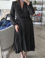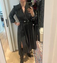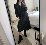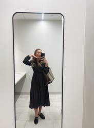 Loved this dress for a work dinner. Felt expensive with fun details. The mini pleats give the dress a lot of beautiful movement. Would highly recommend!