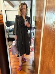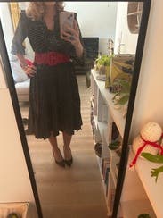 Looked cute in the photos but not on. Hate the elastic waist which makes me look wide. Very “Little House on the Prairie” which I didn’t expect. Didn’t wear.
