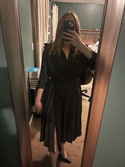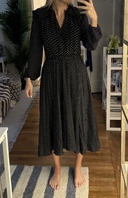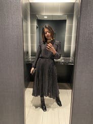 I am absolutely obsessed with this dress! It’s the perfect blend of elegance and effortless style. The fit is incredibly flattering, cinching at the waist (although it did run slightly large in the waist for me, it sat exactly where it needed to) and flowing beautifully with every step. The lightweight fabric and subtle pattern make it feel timeless yet fresh, and the quality is outstanding. I felt so confident and put-together the moment I put it on — it’s one of those dresses that just makes you feel amazing. I’ve worn it for both casual outings and more polished events, and it works perfectly for both. I truly can’t recommend this dress enough — it’s a staple piece that makes you look and feel like your best self!
