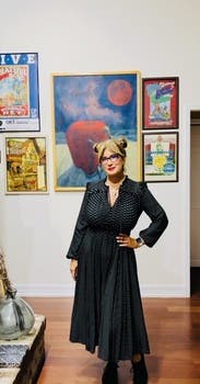 This is a beautiful dress with unique detailing in all the right places. High slit adds dimension without being overly revealing. Ruffles at the shoulder lend architectural detail. Snatched waist is flattering on an hourglass frame. Worn with lilac pumps and again with pink Hasbeen clogs for contrast.