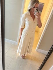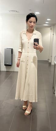 Perfect for work—classic and polished. The knit fabric is comfortable yet structured, very flattering, and fits true to size. The length and button-down style make it versatile for both office and after-work occasions.