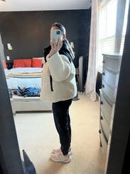 I kept this for 3 winter months in Minnesota during my third trimester. I sized up a bit to account for my baby bump and it was perfect, seeing me through to baby girl's delivery and postpartum period! I looked a little bit like a sheep/marshmallow but ultimately it was cozy and warm enough for some frigid MN days, warm coats are hard to find on RTR!