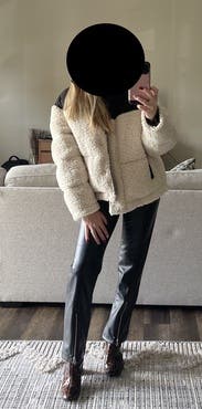 RTR Team Review - this is one of my favorite rentals of all time!!! I have worn this jacket nearly everyday day since receiving it. It’s a cute twist on a classic puffer jacket and I love that it has a hood. It has a slightly boxy and oversized fit which I personally like. What I love most is that it fits chunky sweaters underneath :) I’ll be sad to send this one back.