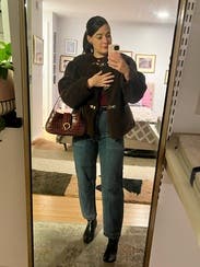 Such a chic elevated coat! Sadly forgot to grab a picture in this jacket, but it definitely has a slightly oversized fit in my opinion (still glad I went with my usual size as I was able to layer with chunkier sweaters on colder days).
