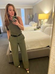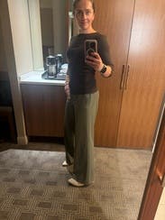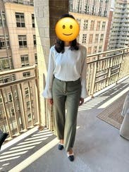 These slacks are great for a polished, professional look. The fit was perfect- tailored but still comfortable, and the material feels high-quality with just the right amount of structure. I really liked the olive tone too; it’s versatile and easy to dress up or down. Definitely a solid wardrobe staple for work or client meetings.