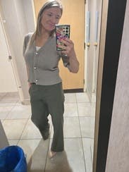 I am very self-conscious about my weight and the way I look in clothes. This is a new style pant for me. My husband loves new styles of clothing. As silly as this may sound, we had a dinner event. I was getting ready and he was taking a quick nap. He is usually very critical of the way I dress. He immediately sat up and said “this is looks great!”